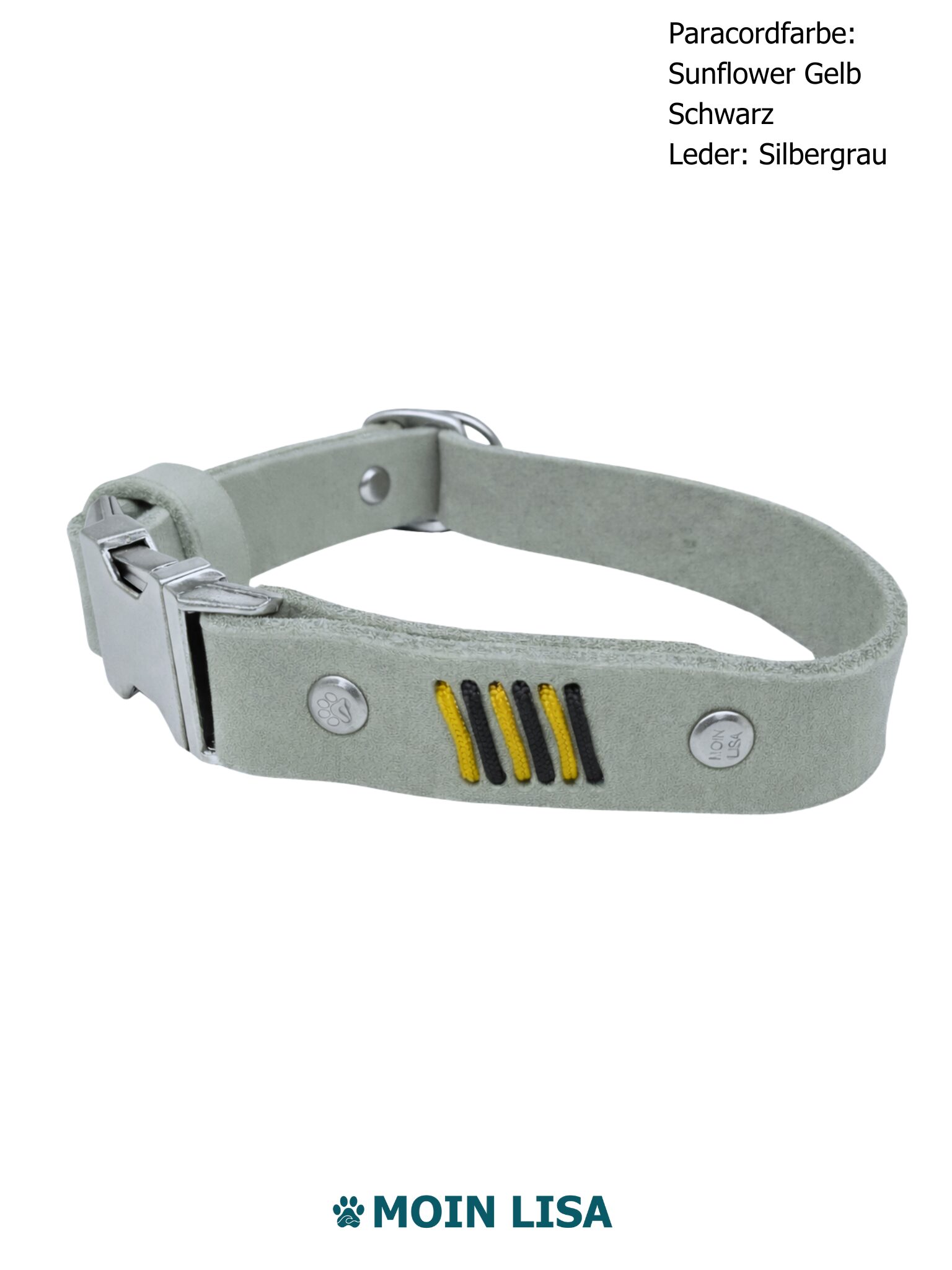 Die Paracord-Flechtung setzt einen bewusst gewählten, rein dekorativen Akzent. Sie verleiht dem Halsband Charakter, ohne den cleanen Look zu unterbrechen.