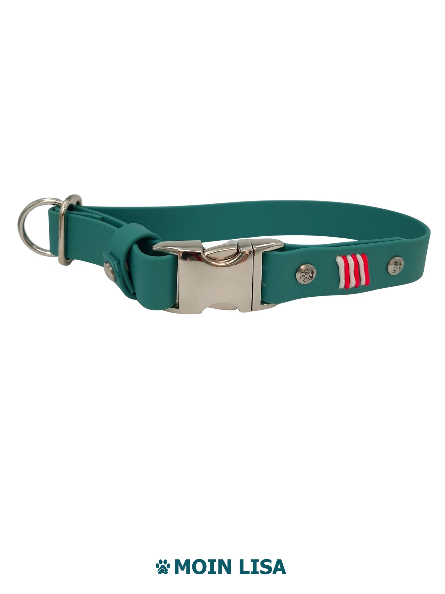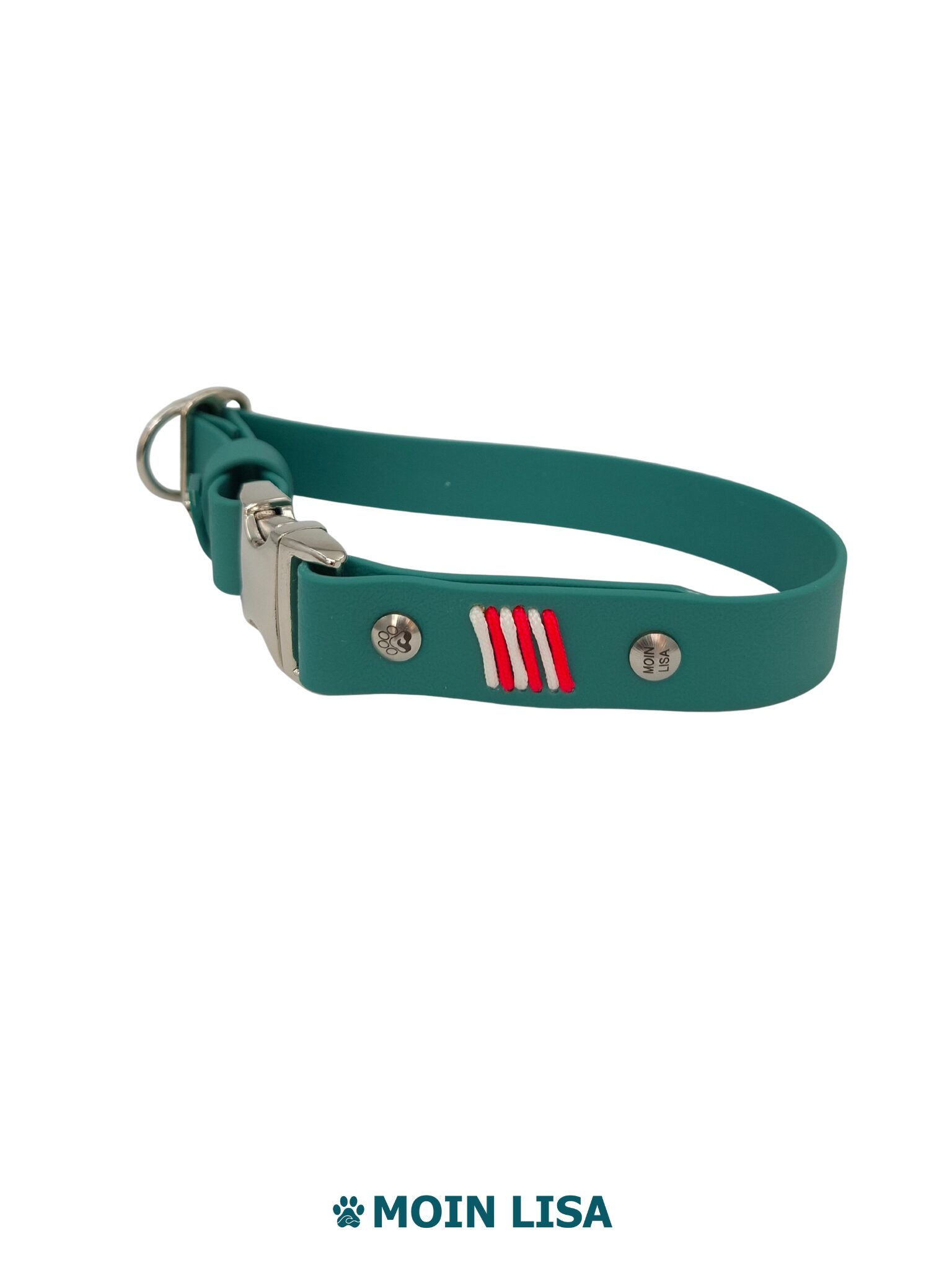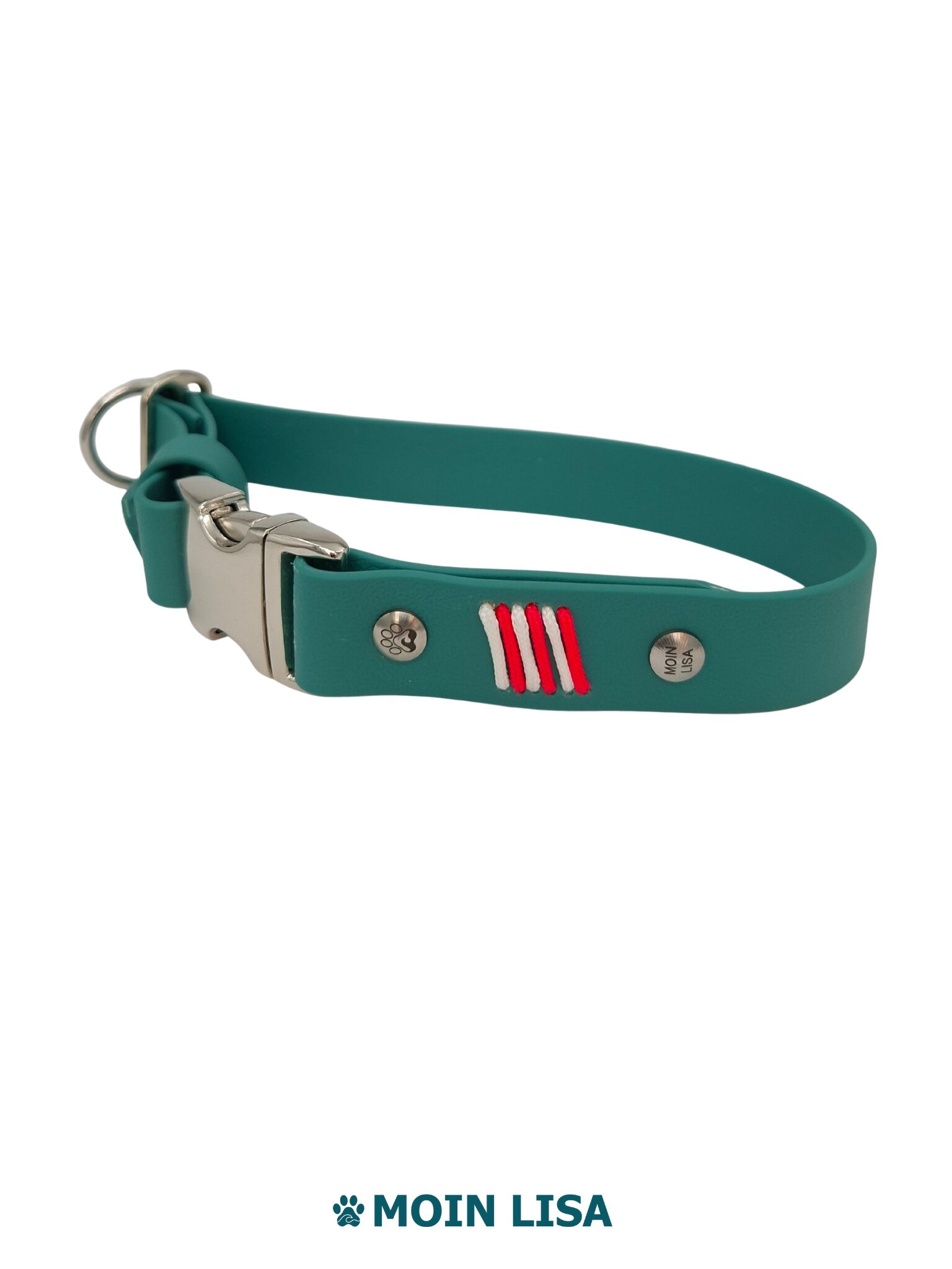 Das Halsband ist 25 mm breit, im Halsumfang verstellbar und schließt mit einer Steckschnalle. Du legst es ruhig an, ohne es über den Kopf ziehen zu müssen. Es verteilt den Druck gleichmäßig und eignet sich auch für sensible Hunde. Eine dezente Paracord-Flechtung setzt einen rein dekorativen Akzent.